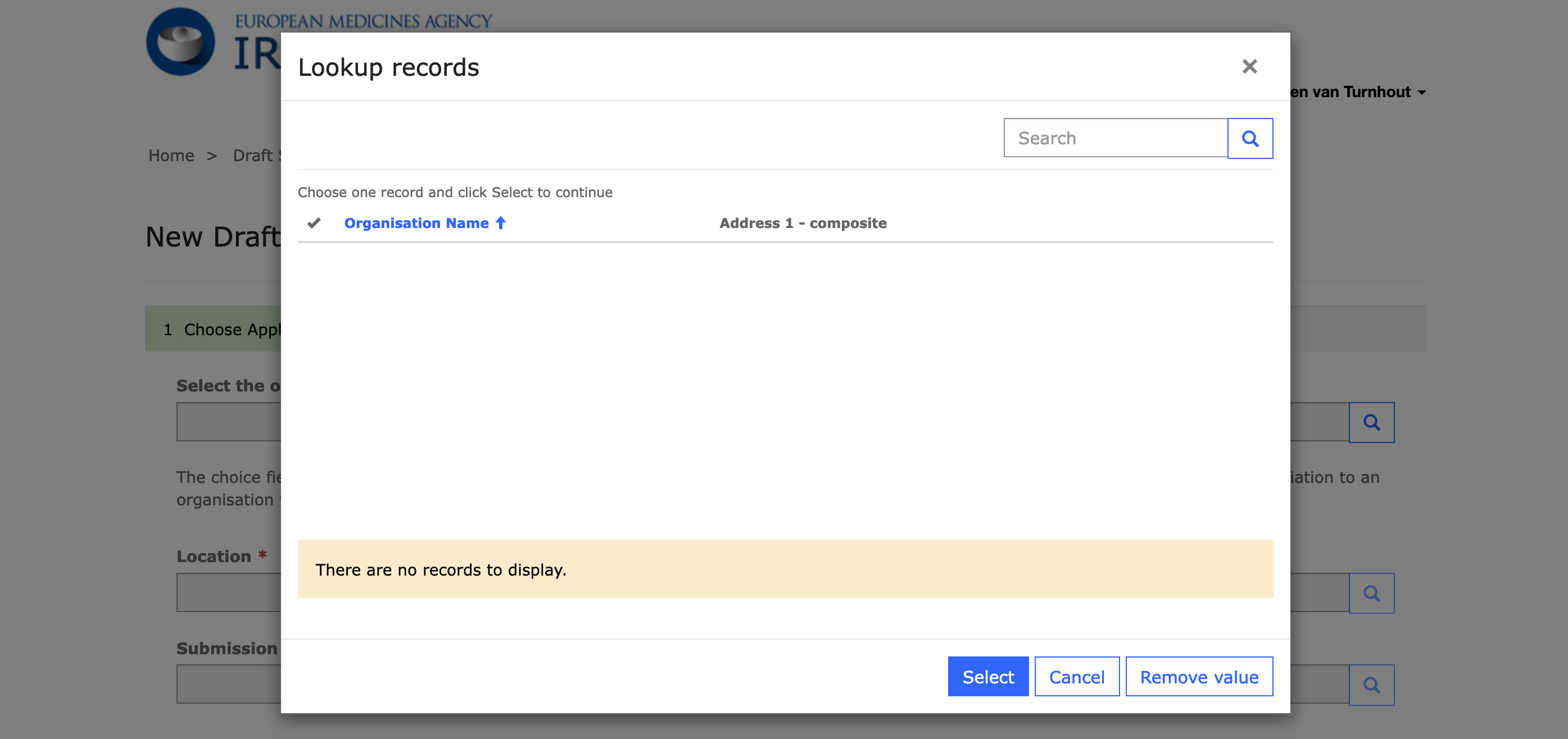 However, if you want to be able to create a new submission on behalf of an Organisation, you need to be affiliated to that Organisation with the role of Industry Manager, to be requested via the EMA Account Management system.